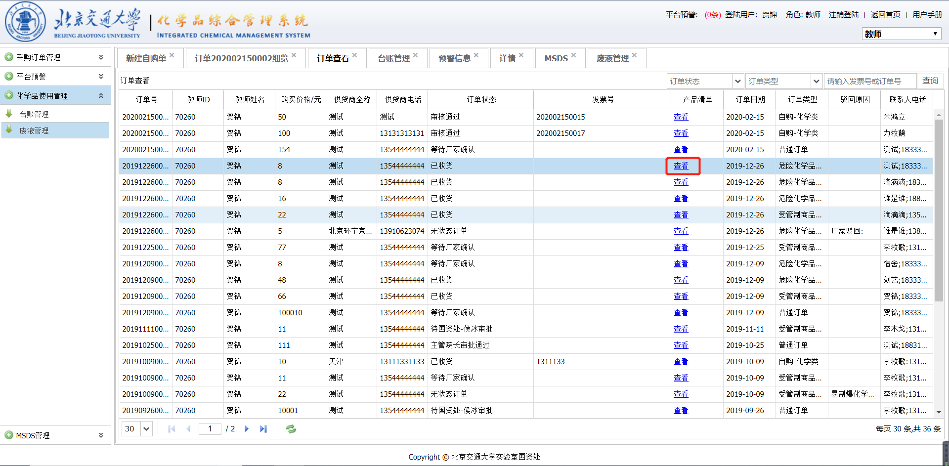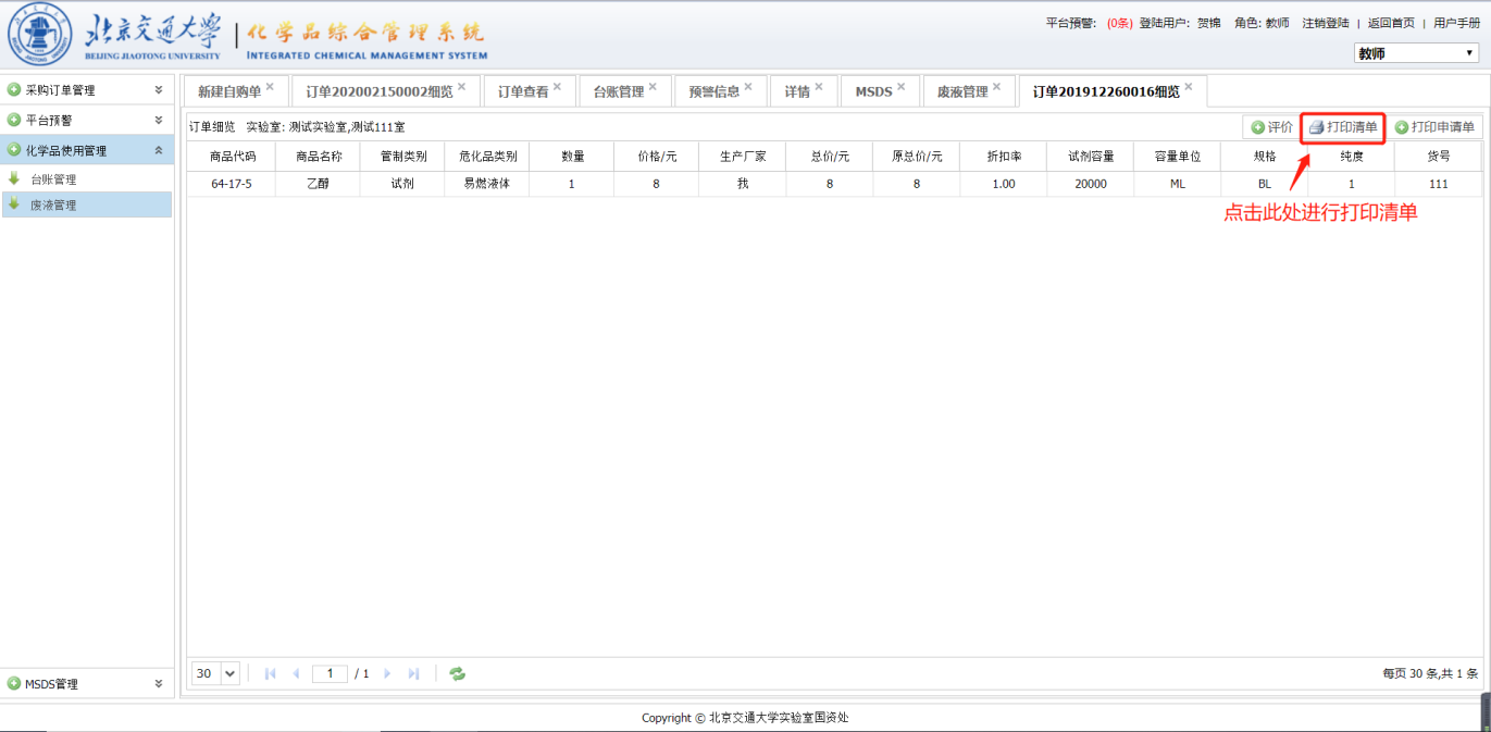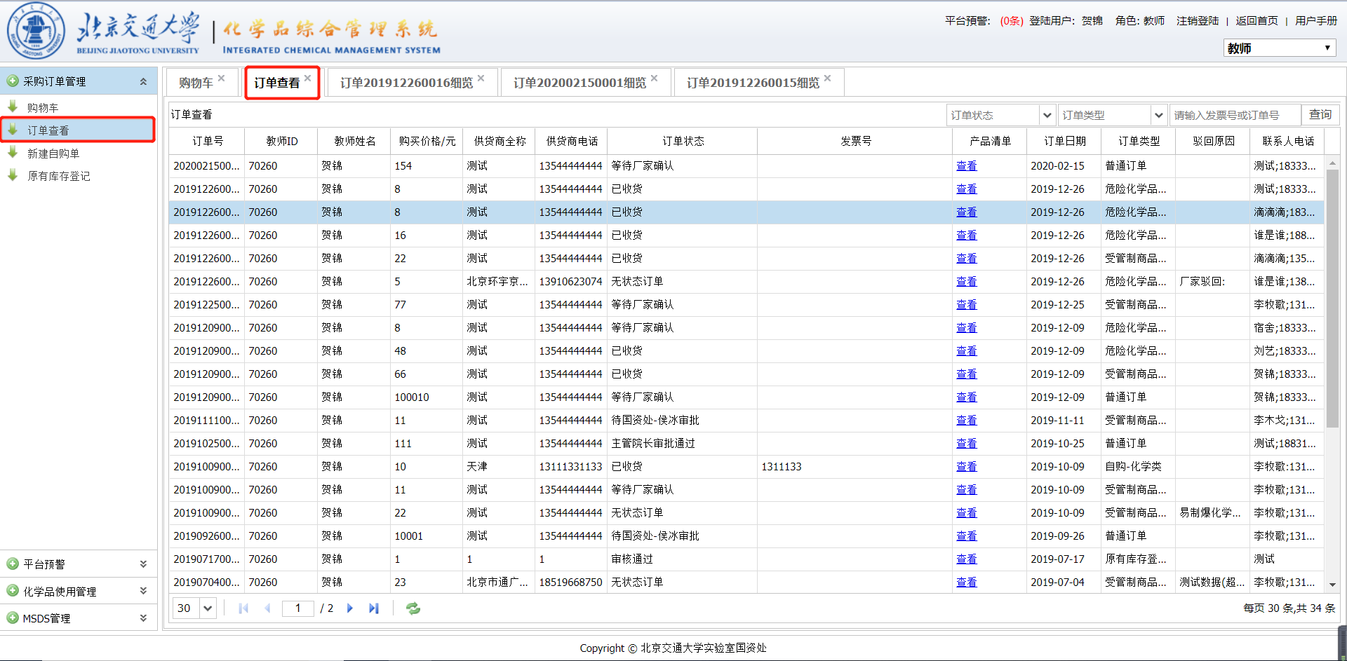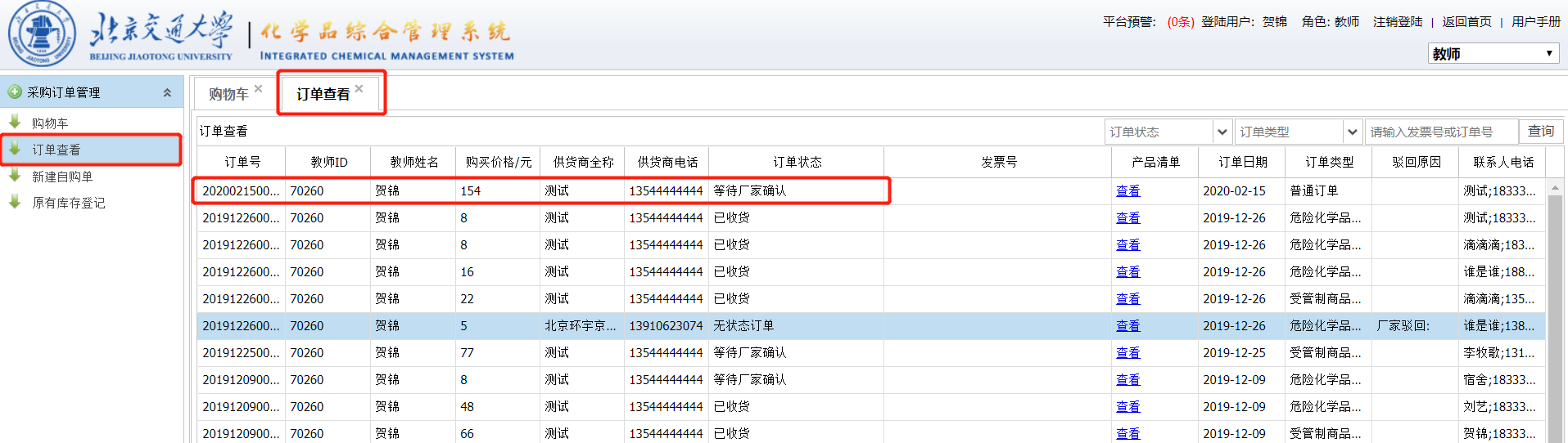 提交的订单系统会自动进入相应的审批流程。教师在此期间可以查看订单的状态和信息。