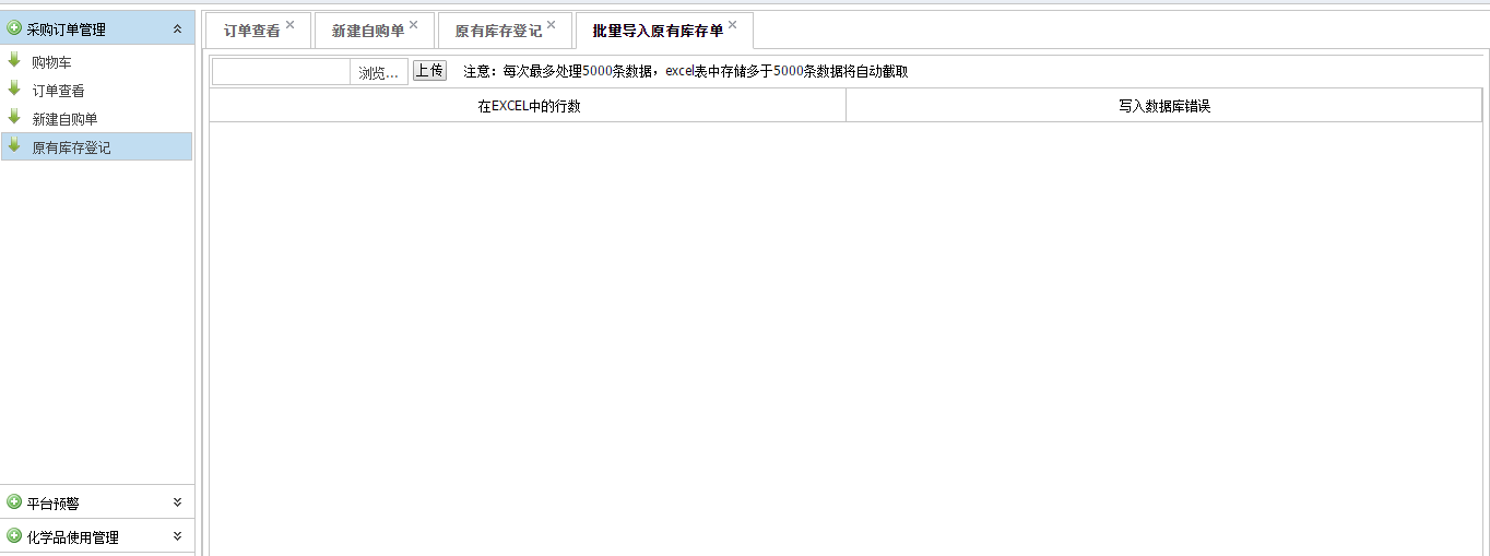 若采购商品多于两条,建议下载模板后,按照模板填写数据后批量导入系统