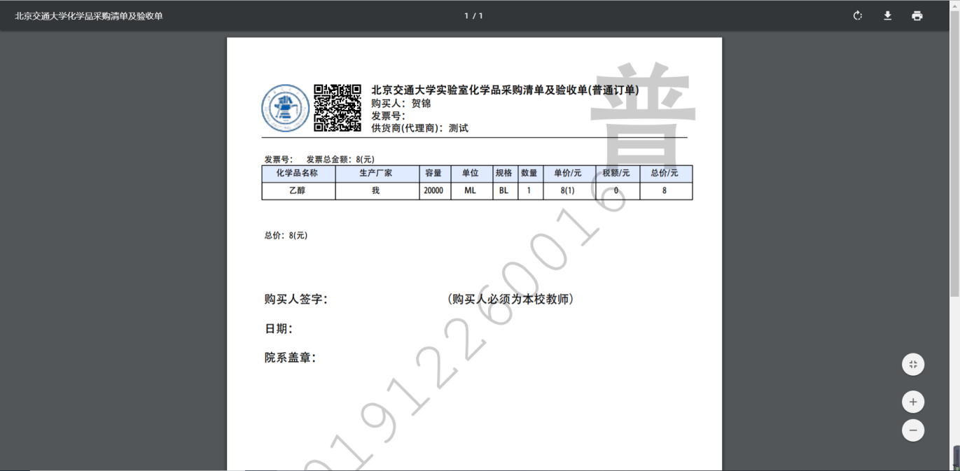 可以看到自己生成的订单中已收货的所有试剂信息